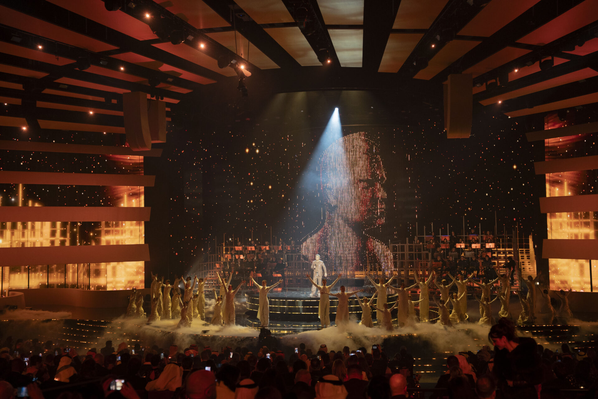 وبعد ذلك، عُزف السلام الملكي السعودي، ثم انتقلت الأمسية نحو العرض الافتتاحي الترفيهي الذي شاركت فيه المغنية العالمية “كايتي بيري” ضمن فقرة تمهيدية مميزة شكلت تجربة بصرية فريدة، وجمعت عناصر الأوركسترا والراقصين والمؤثرات الخاصة، في لوحة فنية متكاملة اعتمدت على الإضاءة الديناميكية والمؤثرات البصرية والحضور المسرحي اللافت، بما عكس ضخامة الإنتاج ودقة الإعداد لهذه الليلة.